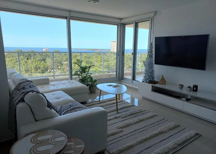 Espectacular Apartamento Con Amplia Vista Al Mar Apartment Punta del Este is located a mere 1.7 km from the Punta del Este and approximately a 25-minute walk from the Cachimba del Rey.